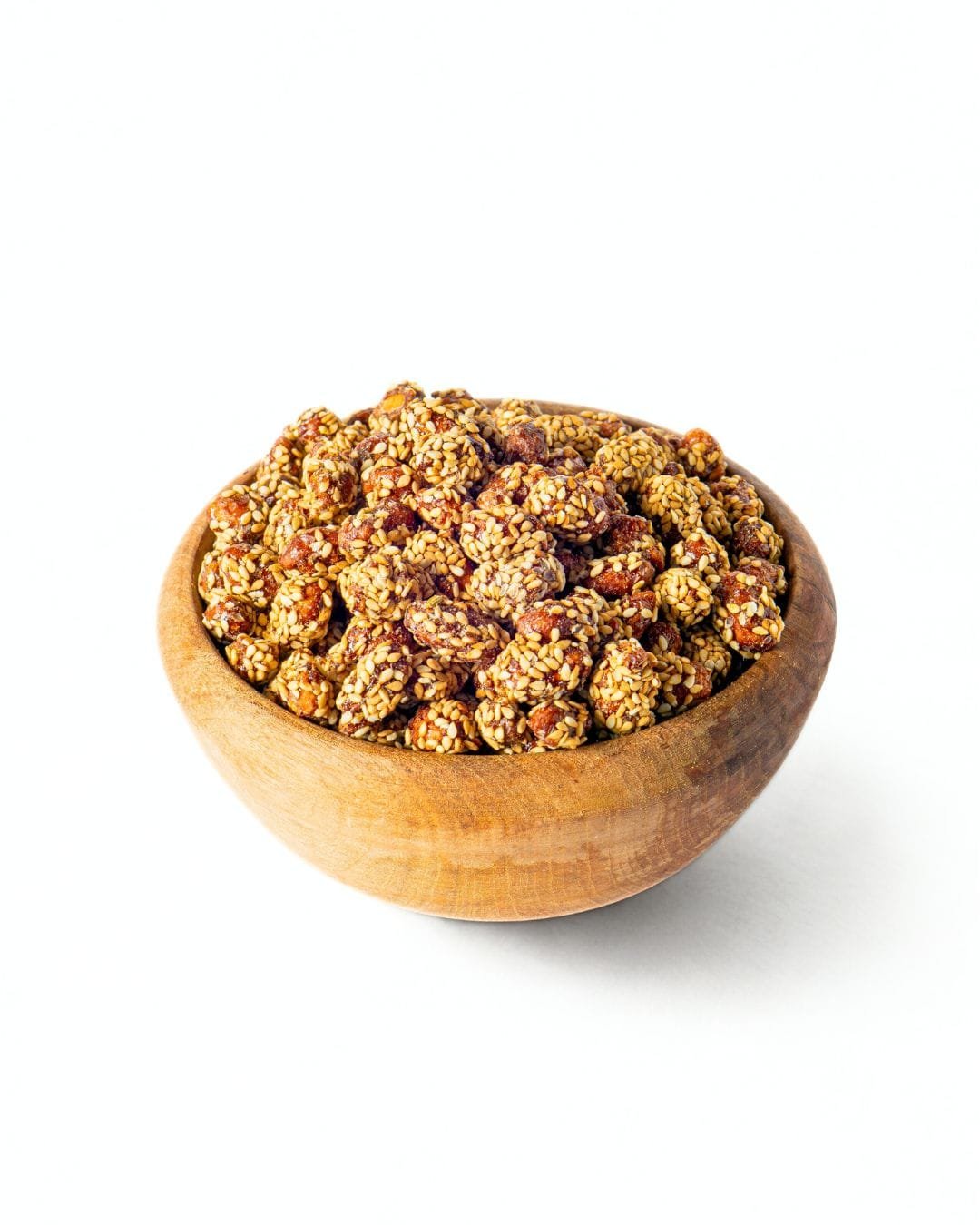 Cacahuètes grillées enrobées d’une couche croustillante de graines de sésame, un mélange gourmand et croquant.